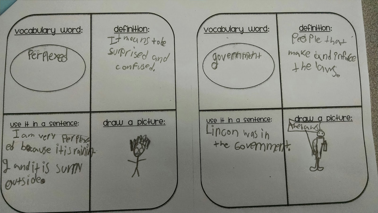 When I come along a word I don't know this is what I do. I write the word, I write the definition, then I use it in a sentence. Finally I draw a picture. Writing the definition helps me learn the word the best. Sometimes words in Spanish and in English sound the same. For example the word zebra in Spanish is cebra. That also helps me learn new words in English.