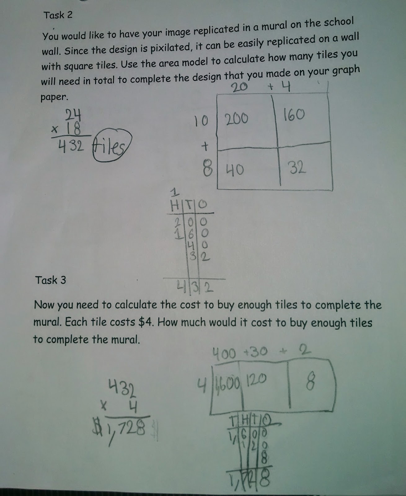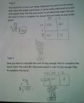 The second and third tasks involved using their picture to calculate how many tiles they would need to recreate it on the wall of the school and then how much it would cost them.
