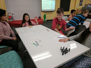Mrs. Sayre helped kick off this exploratorium with a lesson on forces. She led students in a discussion of the different types of forces and how they affect motion. The students then had the opportunity to experiment with these forces through Domino Bowling. They worked in a cooperative team using Dominoes and a marble to recreate bowling. They then experimented by using felt to create friction, and a ramp to create more potential energy. Once they bowled several rounds, the students used a round robin to discuss the differences that they noticed.