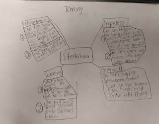 From this activity we took our thinking further to produce a written literary analysis of the character development in Stellaluna. The students are working on analyzing the text evidence to explain how it supports their claim. We are trying to push their thinking outside of their comfort zone to move from analysis like, "This shows that Stellaluna is friendly." to "This shows that Stellaluna would do anything to keep her friends safe." We want them to realize that their evidence has to relate back to their character traits and explain, in their own thinking, how the author used that situation to develop the character.
